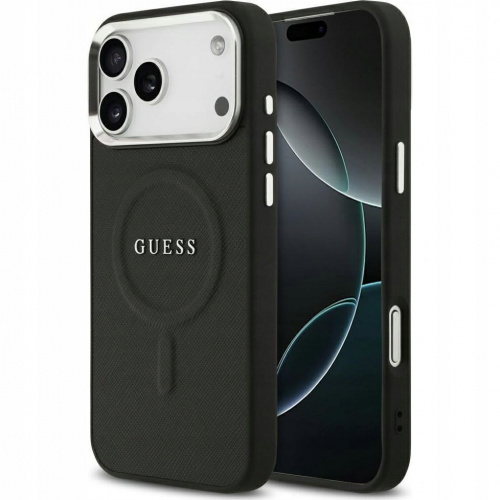 Накладка Guess для iPhone 17 Pro PU Saffiano with Classic metal logo (MagSafe), Hard Black (GUHMP17LPSAHMCK)