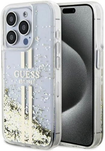 Накладка Guess для iPhone 15 Pro Liquid Glitter Gold Stripes Hard, Transparent (GUHCP15LLFCSEGT)