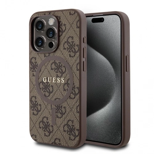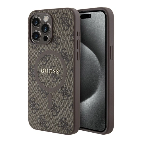 Накладка Guess PU 4G Colored ring Metal logo Hard (MagSafe) для iPhone 15 Pro, Коричневая (GUHMP15LG4GFRW)