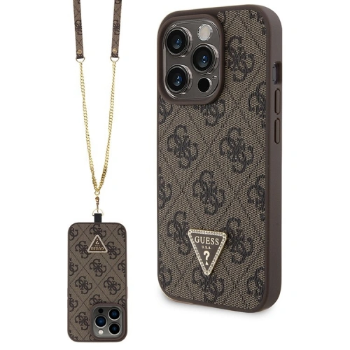 Накладка Guess Crossbody PU 4G Triangle Diamond logo Hard + Universal Strap для iPhone 15 Pro, Коричневая (GUHCP15LP4TDSCPW)
