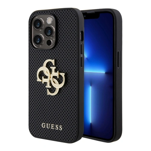 Накладка Guess PU Perforated with 4G Glitter metal logo Hard для iPhone 15 Pro, Чёрная (GUHCP15LPSP4LGK)