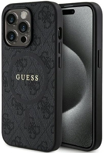 Накладка Guess PU 4G Colored ring Metal logo Hard (MagSafe) для iPhone 15 Pro Max, Чёрная (GUHMP15XG4GFRK)