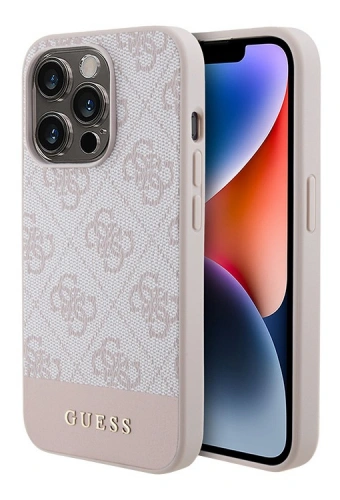 Накладка Guess для iPhone 15 Pro PU 4G Bottom stripe Metal logo Hard, Pink (GUHCP15LG4GLPI)