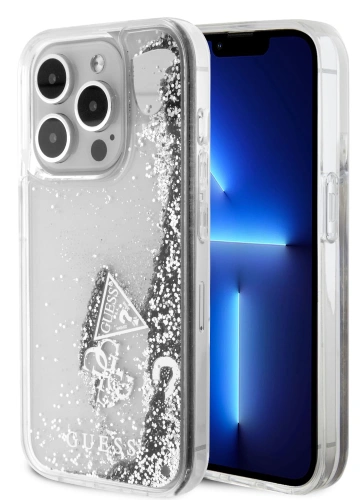 Накладка Guess для iPhone 15 Pro Liquid Glitter Hard Hearts, Silver (GUHCP15LGLHFLSI)