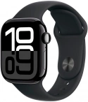 Apple Watch Series 10, 42 мм, алюминий цвета «черный глянец», спортивный ремешок цвета "Black", M/L (MWWF3)