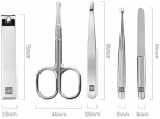 В комплектеманикюрные ножницы, клиппер, пинцет, кюретки, пилка для ногтей, кожаный кейс