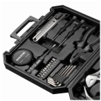 КомплектацияМолоток, Отвёртки, Канцелярский нож, Рулетка, Узкогубцы, Разводной ключ, 10 биток для отвертки, Бокс для хранения мелочей