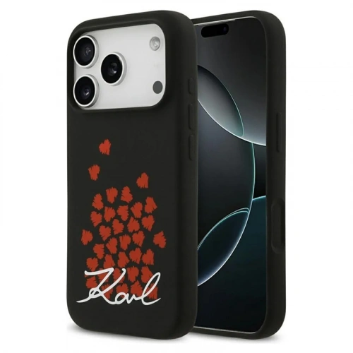 Накладка Lagerfeld для iPhone 17 Pro Max Liquid Silicone Hearts Hard (MagSafe), Чёрная (KLHMP17XSMHBKSOK)