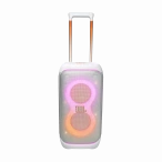 Несмотря на свои большие размеры, PartyBox Stage 320 легко транспортировать благодаря встроенной телескопической ручке сверху и прочным широким колесам. Колонка предназначена для использования как в помещении, так и на улице, она защищена от брызг по стандарту IPX4, поэтому небольшой дождь не помешает веселью.